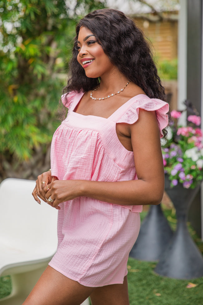 - Pink Square Neck Romper
