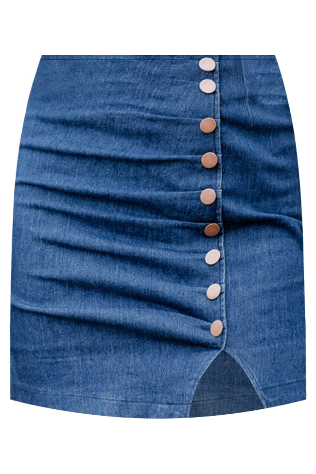 - Dark Wash Side Button Denim Mini Skirt