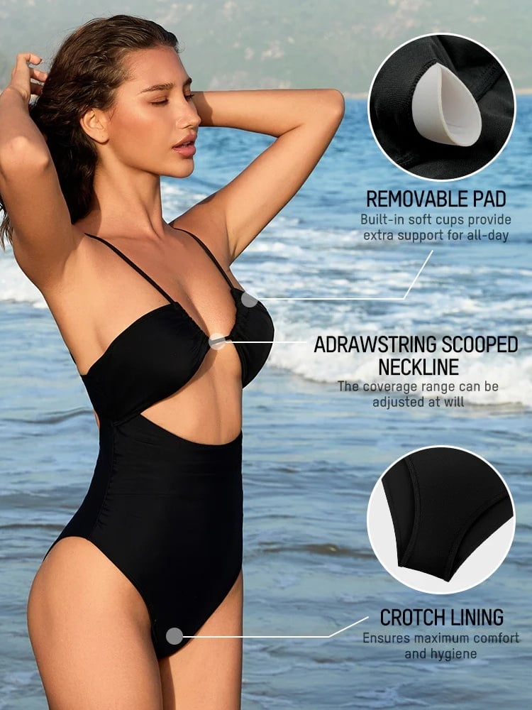 The sexy swimsuits built with a drawstring scooped neckline, so that the coverage range of your sisters can be adjusted at your will.