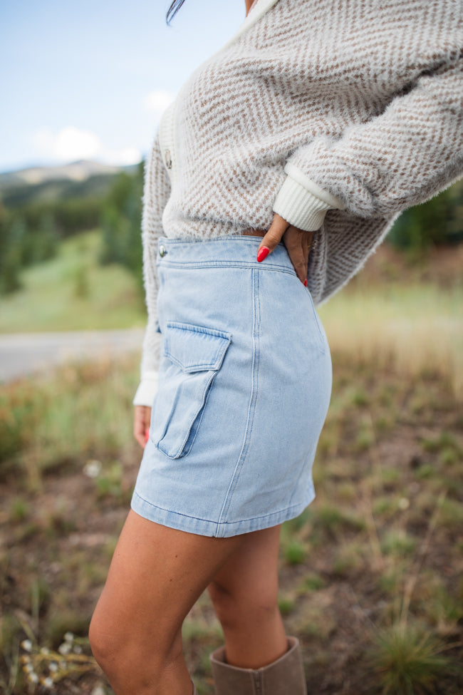 - Cargo Light Wash Denim Mini Skirt